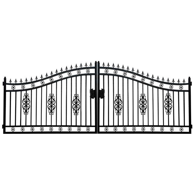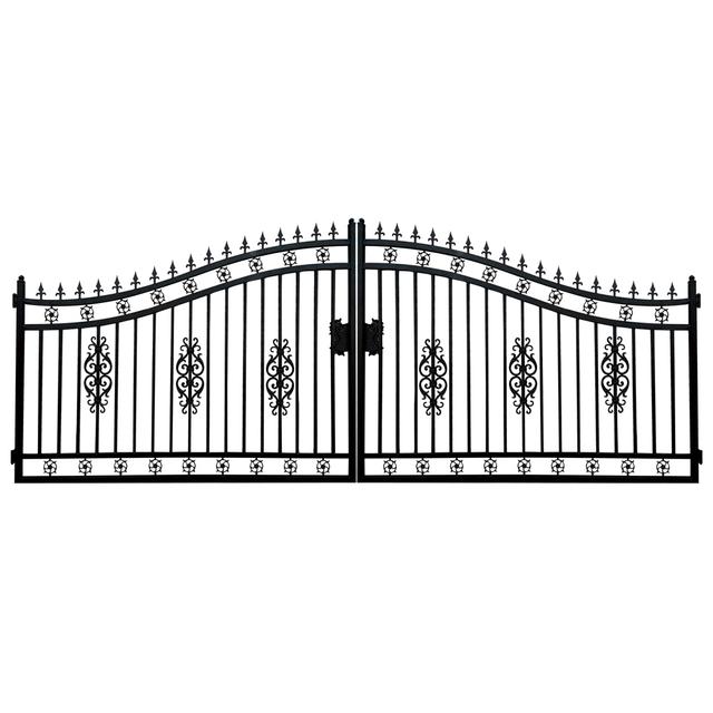 Value Industrial 20 ft. Wrought Iron Driveway Gate - Flower Design, Heavy-Duty