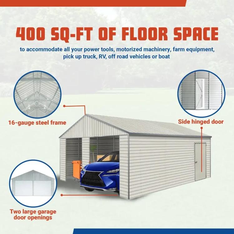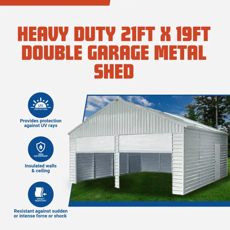 21'x19' Heavy Duty Metal Garage Shed, 75 MPH Wind Rated