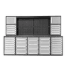- Workbench: 113″ (L) x 27 1/2″(W) x 37 3⁄8″(H) + Cabinet: 40″(H)