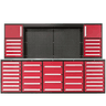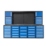 Introduce the VAL-10FT40D Blue 10-foot workbench cabinet combo, boasting 30 workbench drawers and 10 cabinet drawers! Complete with a stainless steel tabletop, full-extension ball bearing slides, lockable drawers, & swing door cabinets featuring spacious pegboard, this combo provides ample storage capacity and organization options to enhance productivity in any workspace. Get organized today with our 40-drawer workbench cabinet combo!